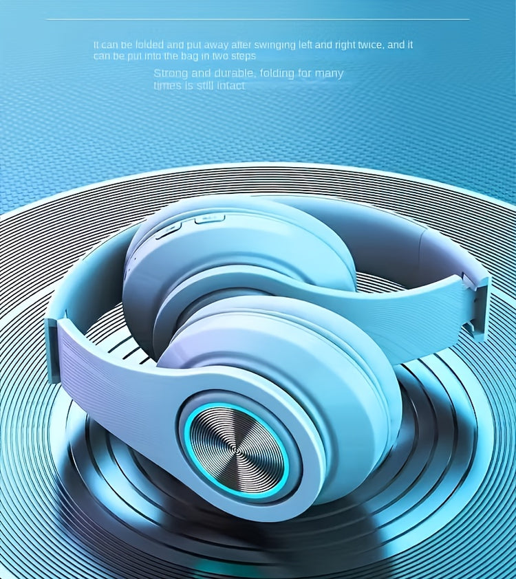 Introducing The B39 Wireless Headphones with LED Lights, Designed for Comfort with a Foldable Over-Ear Style. Features Include a Built-In Microphone, FM Radio, And a Card Slot, Making It Perfect for Use with School Devices, T